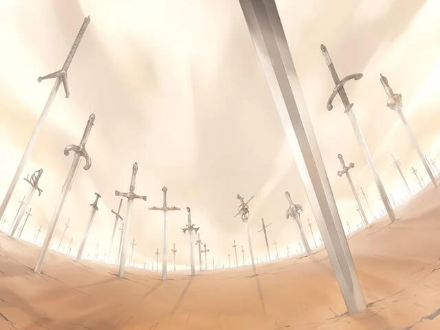 Mundane objects such as pipes, chains, or a modern sword are practically identical to their true counterparts, and only the utmost scrutiny using magical tools can identify them.Noble Phantasms that are classified as "Swords" are degraded by a single rank, such as Hrunting going from rank A to B, or Durandal from A+ to A. In addition, their cost is significantly less than a usual projection, as they already exist within Unlimited Blade Works. Shirou believes that he can create more perfect copies with a few more years of practice.Other weapons and armaments like shields and spears are degraded by two ranks, such as Gáe Bolg going from rank B to D.Divine Constructs cannot be recorded inside Unlimited Blade Works, but can still be traced and projected at a cost. They are degraded by an additional rank, making a sword like Excalibur drop from A++ rank to A, or Vajra from B+ to D.By making a Projection as a "Broken Phantasm" that is destroyed with one use, they are increased by a rank.